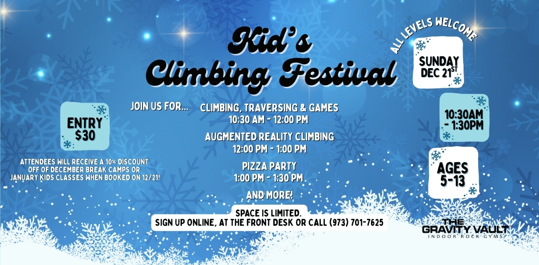 Keep your kids active during their break from school with The Gravity Vault's Break Camp! It is the perfect blend of top-rope climbing, games, and much more!