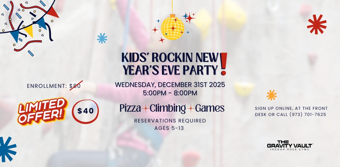 Enjoy some lights out climbing, games, and a Pizza Party to usher in the new year!