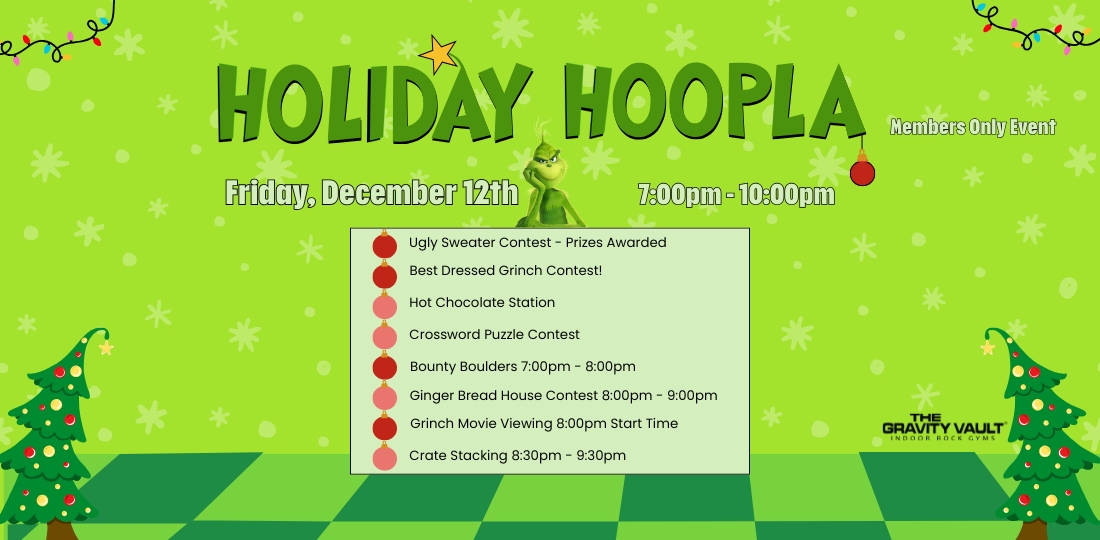 The Gravity Vault - Hoboken, NJ will be CLOSED for Christmas Day!