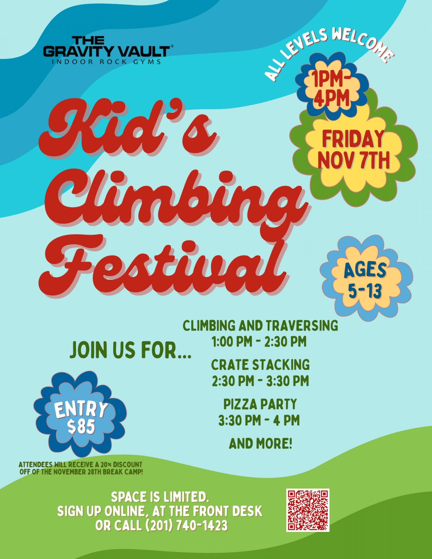 The Gravity Vault Hoboken Break Camps run for 2 hours and are designed with active kids in mind.