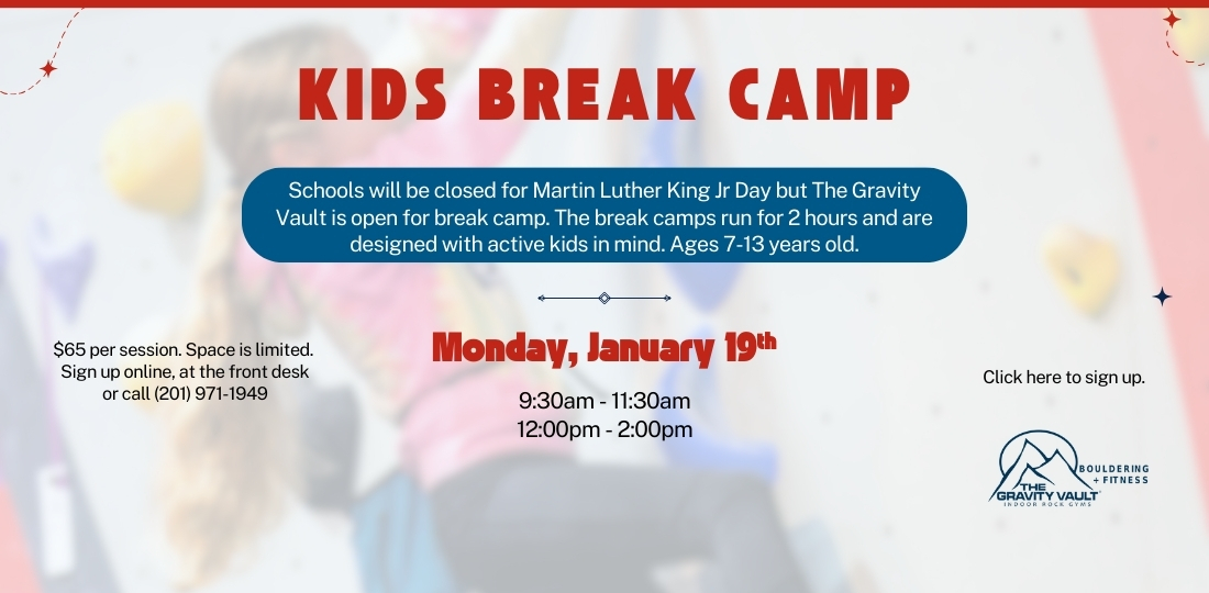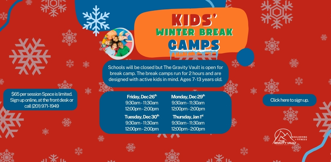 The Gravity Vault Jersey City's Break Camps run for 2 hours and are designed with active kids in mind!
