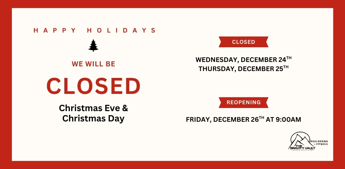 We will be closed on 12/24/ and 12/25 for Christmas Eve and Christmas. We wish you all the best for the holidays and can't wait to see you on 12/26 for our normal hours!