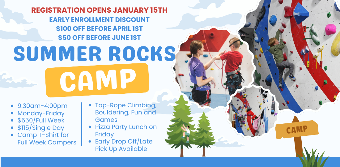 A: No climbing experience is required, but each day is filled with climbing focused activities. If you are unsure if they enjoy climbing, we recommend bringing them in to climb prior to camp to get a feel for their interest.