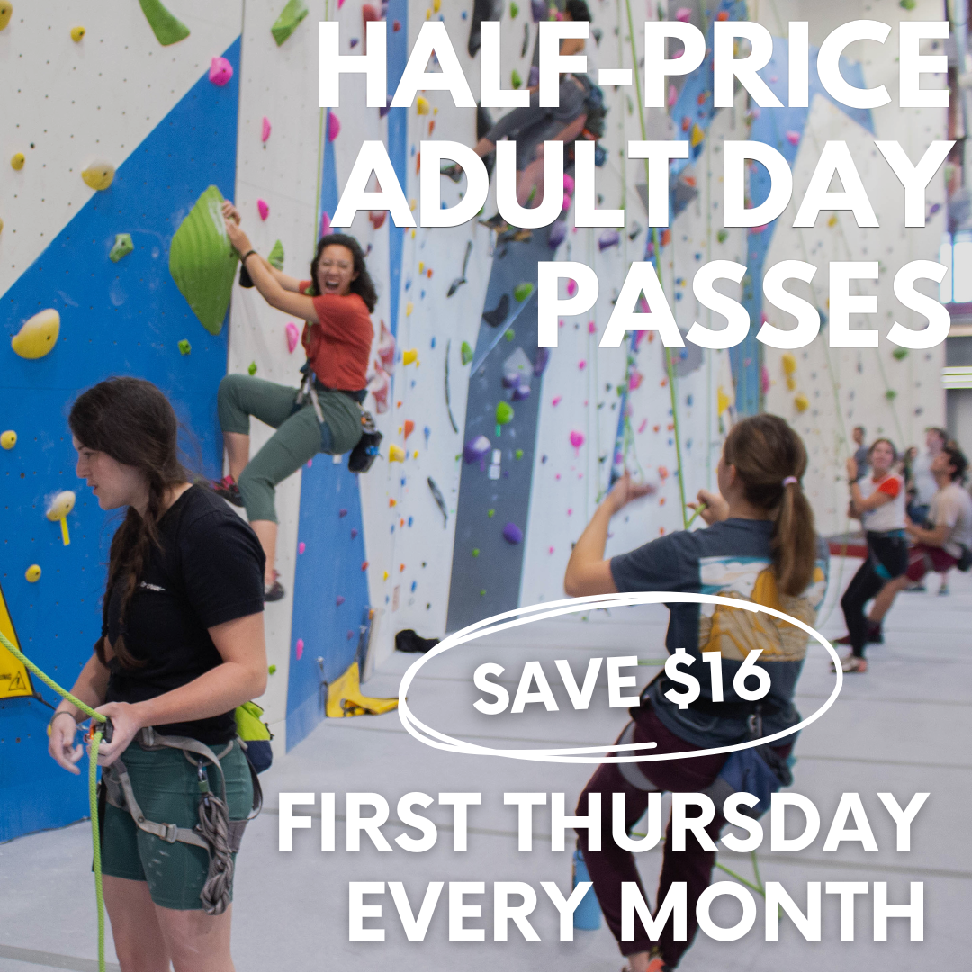 Adult Day Passes are HALF OFF every first thursday of the month. Only $16